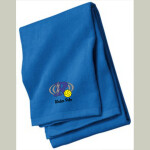 Fleece Blanket with Logo on one corner. Name can be added for an additional fee. Enjoy outdoor games or relax while you watch TV in our warm Sweatshirt Blanket. Perfect for screen printing a logo. 9-ounce, 60/40 ring spun combed cotton/poly Fully hemmed Dimensions: 50" x 60"